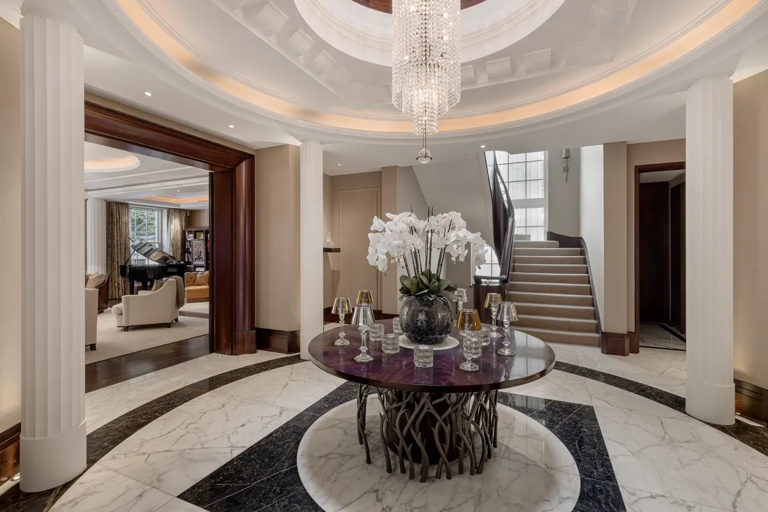 This striking stucco-fronted freehold house unfolds across five floors and measures 21,659.00 sq. ft. Set in the heart of St John’s Wood, on the prestigious Avenue Road the property is beautifully defined by its exceptional finish, high ceilings, state-of-the-art technology and expansive living spaces.